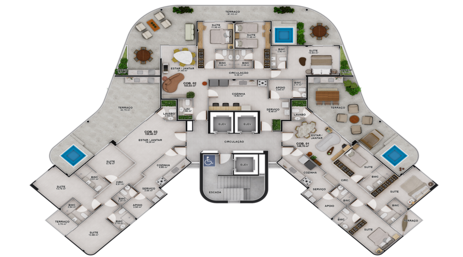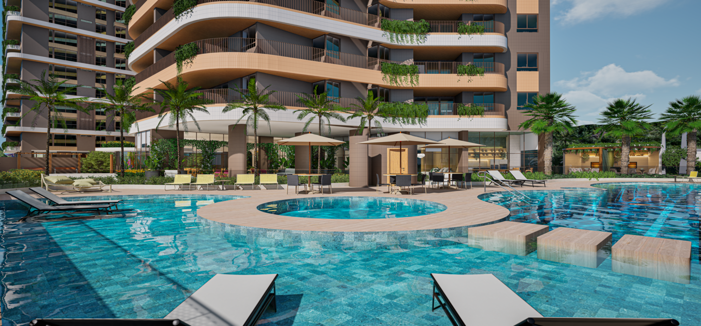 Boulervad, Beach Tennis, Campo de futebol, Brinquedoteca, Cinema, Área de lazer pilotis, Sala de jogos, Spa.